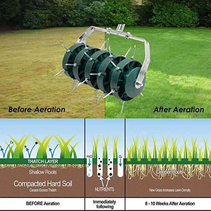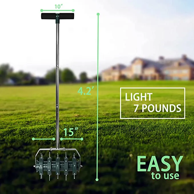 This rolling lawn aerator helps you grow a lush, green lawn